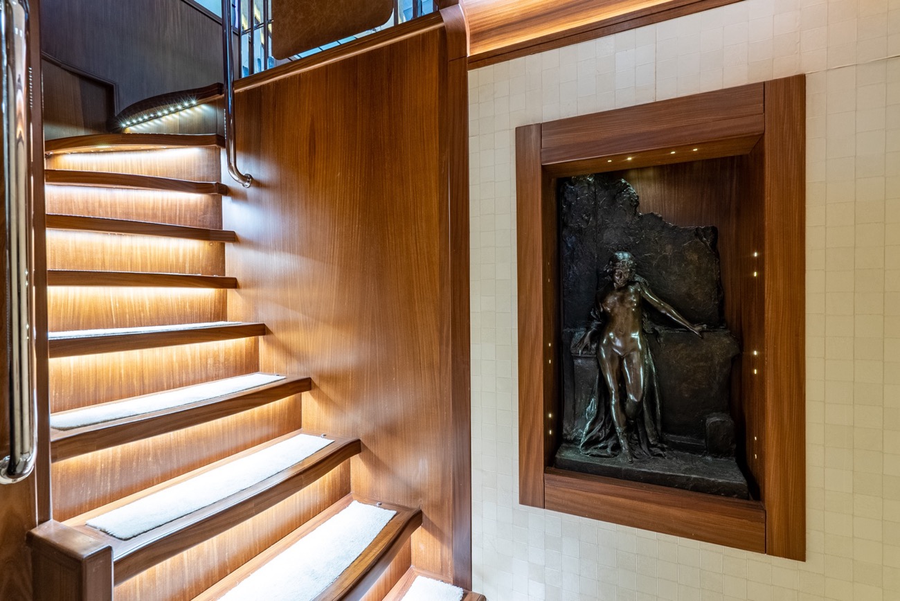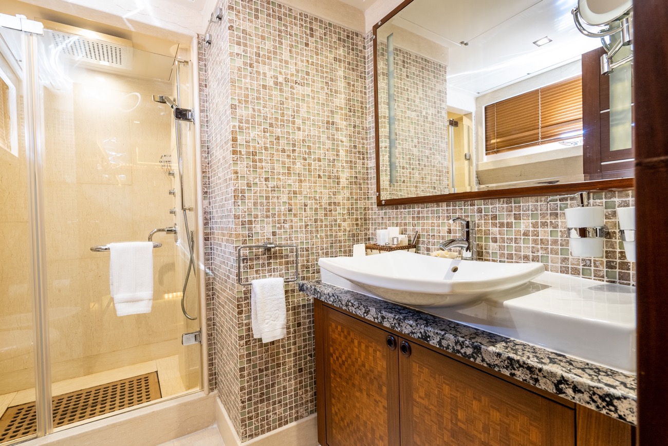 Inside, Daima exudes warmth and sophistication, featuring a stylish interior of cool creams and soft metallics. She comfortably hosts up to ten guests across five luxurious cabins, including a spacious master suite, a VIP suite, a double suite, and two twin guest suites. Guests are treated to culinary excellence, with a talented chef crafting gourmet meals from fresh, local ingredients. Attended by a dedicated crew of six, Daima promises an unforgettable charter experience, making her a standout choice for Mediterranean summers.