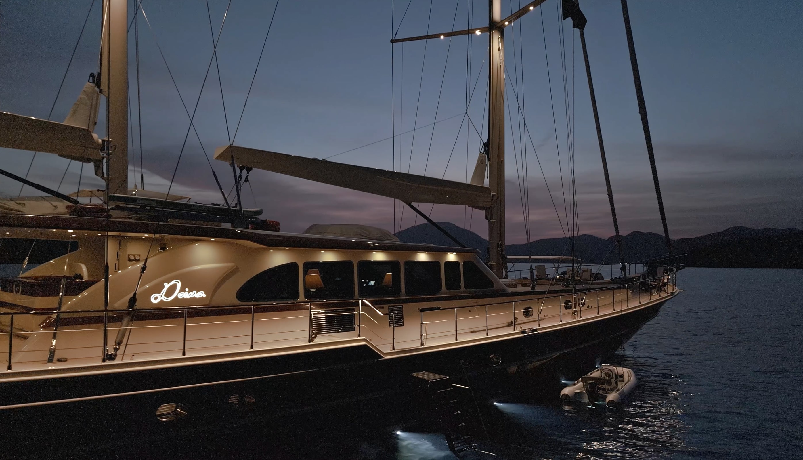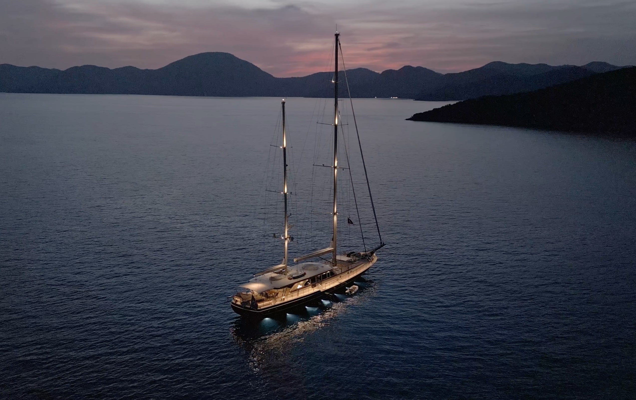 The 42 m Sailing Yacht Daima is a remarkable fusion of performance and classic elegance, crafted at a renowned Antalya shipyard in Turkey. Marrying Turkish and New Zealand expertise, Daima offers the speed and capabilities of a modern superyacht, paired with a traditional hull that enhances her timeless appeal. Equipped with advanced rigging for a thrilling sailing experience, she also features powerful twin engines for seamless travel between ports.